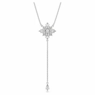 Obsyp swoją kolekcję biżuterii odrobiną gwiezdnego pyłu dzięki temu pięknemu naszyjnikowi z rodziny Stella. Będąca połączeniem bezbarwnych kryształów o różnych szlifach ozdoba zachwyca uderzającym motywem gwiazdy i kamieniem o szlifie w kształcie latawca, który zwisa z rodowanego łańcuszka. Noś go jako samodzielną ozdobę i zdobądź się na odwagę, by lśnić.
