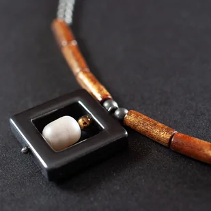 Interesujący naszyjnik z kolekcji JESTEŚ PERŁĄ. Gruba, kwadratowa ramka ze srebrnego hematytu podkreśla i uwydatnia piękno białej perły słodkowodnej znajdującej się wewnątrz. Wisior długości 2,5 cm podwieszony j ...