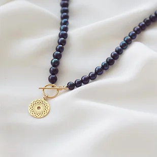 Naszyjnik z czarnych pereł naturalnych z ażurowym kółkiem