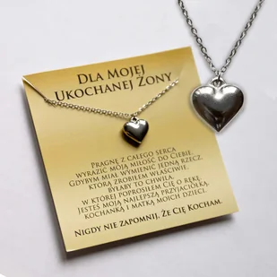 Naszyjnik z dedykacją serce na urodziny dla żony od męża ze stali chirurgicznej Materiał: stal chirurgicznaSplot: ankierKolor: srebrnyDługość naszyjnika: 45 cm + 5 cm regulacjaMotyw:
