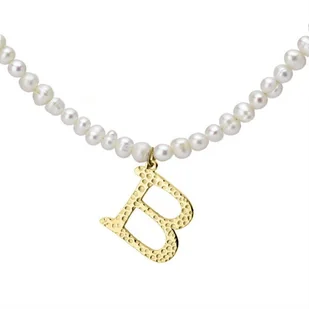Naszyjnik z literką B z perłami hodowlanymi, pozłacany trwałą metodą PVD, która nadaje kolor 14k złota. Literka o ciekawej, oryginalnej fakturze. Naszyjnik wykończony hipoalergiczną stalą szlachetną. Minimalistyczna forma zrównoważona ponadczasową klasyką nada szyku każdej kobiecie. Biżuteria jest doskonałym pomysłem na spersonalizowany prezent dla osoby bliskiej sercu.