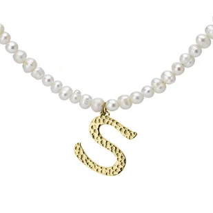 Naszyjnik z literką S z perłami hodowlanymi, pozłacany trwałą metodą PVD, która nadaje kolor 14k złota. Literka o ciekawej, oryginalnej fakturze. Naszyjnik wykończony hipoalergiczną stalą szlachetną. Minimalistyczna forma zrównoważona ponadczasową klasyką nada szyku każdej kobiecie. Biżuteria jest doskonałym pomysłem na spersonalizowany prezent dla osoby bliskiej sercu.