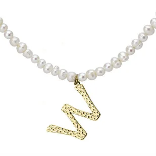 Naszyjnik z literką W z perłami hodowlanymi, pozłacany trwałą metodą PVD, która nadaje kolor 14k złota. Literka o ciekawej, oryginalnej fakturze. Naszyjnik wykończony hipoalergiczną stalą szlachetną. Minimalistyczna forma zrównoważona ponadczasową klasyką nada szyku każdej kobiecie. Biżuteria jest doskonałym pomysłem na spersonalizowany prezent dla osoby bliskiej sercu.