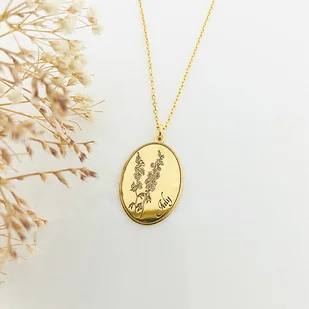 ♡ OPIS Delikatny naszyjnik z zawieszką z grawerowanym kwiatem ostróżki, kwiat ten jest przypisany do miesiąca lipca. . Kwiat oddany jest bardzo realistycznie. (W ofercie również inne naszyjniki z kwiatam ...