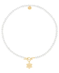 Naszyjnik z pereł z pozłacanym ażurowym kwiatkiem 42 cm