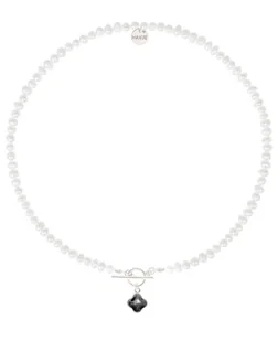 Naszyjnik z pereł ze srebrną koniczyną z czarną emalią