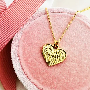 ♡ OPIS Oryginalny naszyjnik z wyjątkową zawieszką ze skrzydłami ułożonymi w kształt serce . Wykonany ze srebra próby 925 i złocone 24 k złotem. ♡ DETALE Kruszec: srebro próby 925 złocone 24-karatowym złotem serce: 1 ...