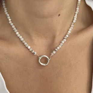 Naszyjnik ZAPIĘCIE KOŁO kamień księżycowy PEŁNIA kamienie naturalne biały wykończony srebrnym zapięciem w formie koła. Naturalne kamienie w odcieniu mlecznej bieli dostępny w wersji srebrnej lub srebrne po ...
