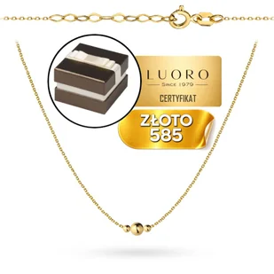złoto Kolor złota: żółty Próba: 585 Długość łańcuszka: 42+3 cm (regulacja długości) Średnica gładkich kulek: 2,5 mm / 4 mm Waga: