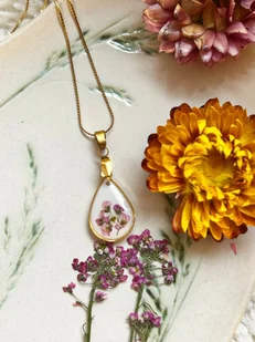 Piękny naszyjnik z kwiatami zamkniętymi w żywicy