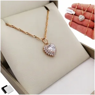 Piękny Złoty Naszyjnik Damski Serce 18K Na Prezent / Stal Chirurgiczna 70Cm