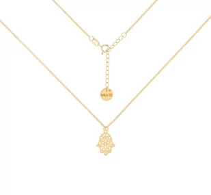 Srebrny naszyjnik pancerka choker pozłacany z ażurową ręką Fatimy. Choker ma przedłużkę regulacyjną, która pozwala dopasować długość wedle potrzeb. Wykonany ...