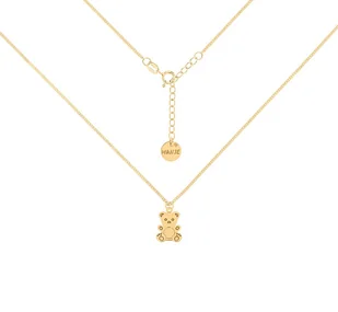 Srebrny naszyjnik pancerka choker pozłacany z misiem. Choker ma przedłużkę regulacyjną, która pozwala dopasować długość wedle potrzeb. Wykonany ze srebra próby 925, pokryty 24-karatowym złotem. Wymiary zaw ...