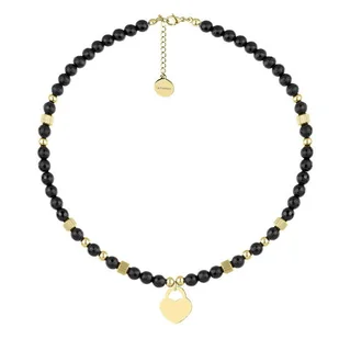 Naszyjnik z fasetowanego czarnego onyksu ze złotymi elementami i zawieszką - sercem - kłódką o gładkiej powierzchni, idealnie nadającą się pod indywidualny grawerunek. Naszyjnik wykonany z pozłacanej stali szlachetnej. Naszyjnik prezentuje się niezwykle efektownie i urozmaici każdą stylizację. Spraw, aby Twoja biżuteria była wyjątkowa - nadaj jej niepowtarzalny charakter poprzez indywidualny grawerunek. Umieść na niej to, co jest dla Ciebie ważne: