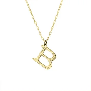 Damski naszyjnik z literką B o oryginalnej fakturze, utrzymany w minimalistycznej formie. Litera zawieszona na łańcuszku o długości 45 cm + 3 cm regulacji. Wykonany z hipoalergicznej stali szlachetnej 316L. Pozłacany innowacyjną i trwałą metodą PVD. Genialnie prezentuje się noszony wraz z innymi naszyjnikami jako naszyjnik warstwowy.