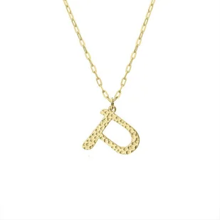 Damski naszyjnik z literką P o oryginalnej fakturze, utrzymany w minimalistycznej formie. Litera zawieszona na łańcuszku o długości 45 cm + 3 cm regulacji. Wykonany z hipoalergicznej stali szlachetnej 316L. Pozłacany innowacyjną i trwałą metodą PVD. Genialnie prezentuje się noszony wraz z innymi naszyjnikami jako naszyjnik warstwowy.