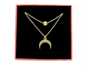 Pozłacany podwójny naszyjnik księżyc crystal kulka
