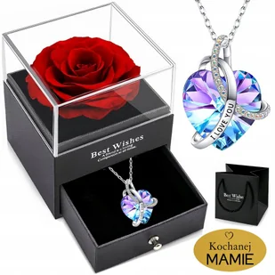 Prezent Na Dzień Mamy Matki Naszyjnik Serce Diametnowany Zawieszka Róża