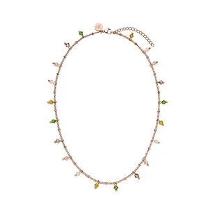 Filigranowy naszyjnik ozdobiony kolorowymi szklanymi koralikami. Idealnie komponuje się z letnimi stylizacjami o klimacie boho. Materiał: Złoto: stal nierdzewna platerowana 18-karatowym złotem Srebro: stal nierdzewna Różowe złoto: stal nierdzewna platerowana 18-karatowym różowym złotem Koraliki ozdobne: