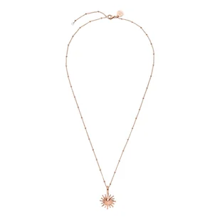 Symbol słońca symbolizuje pewność siebie, radość życia i odwagę, przypominając rajskie chwile pod palmami. Urok słońca w połączeniu z filigranowym łańcuszkiem sprawi, że będziesz promienieć od wewnątrz i będzie nowym elementem Twojego stroju! Materiał: Złoto: pozłacana 18-karatowym złotem stal szlachetna Srebro: stal szlachetna Różowe złoto: stal szlachetna pozłacana 18-karatowym różowym złotem Długość: