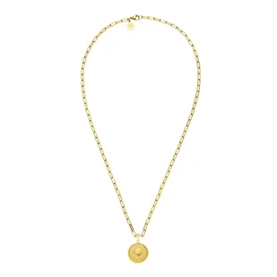 Naszyjnik Waina to must-have na dni, kiedy chcesz się wyróżnić. Ten wyrazisty naszyjnik to idealnie dopasowana kombinacja: prosty naszyjnik jest uzupełniony przyciągającą wzrok monetą, która zachwyca delikatnie wykonanym tłoczeniem. Materiał: Złoty łańcuszek: pozłacana 18-karatowym złotem stal szlachetna Srebro: