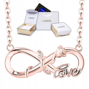 Różowy Naszyjnik Nieskończoność z Różą Napisem Love Kwiat Życia SREBRO 925
