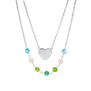 Srebrny naszyjnik wykonany z wysokiej jakości srebra próby 925, ozdobiony zawieszką w kształcie serca, kolorowymi koralikami. Motyw serca symbolizuje miłość ...