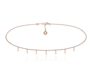 Srebrny choker z zawieszkami Wykonany ze srebra pr. 925 dodatkowo uszlachetniony różowym złotem. Długość minimalna to ok. 34 cm, maksymalna - ok. 37 cm. Wymiary zawieszek to ok.