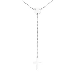 Srebrny naszyjnik próba 925 ozdobiony kółkiem i krzyżykiem rodowany. Idealny do codziennych stylizacji.
