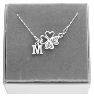 Srebrny naszyjnik koniczynka cyrkonia litera LITERKA PUDEŁKO SREBRO 925