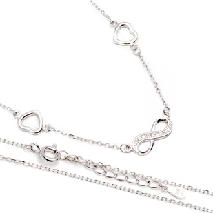 Srebrny naszyjnik ze znakiem nieskończoności, serduszkami i łańcuszkiem o klasycznym splocie typu ankier. Wykonany z najwyższej jakości lśniącego srebra prób...