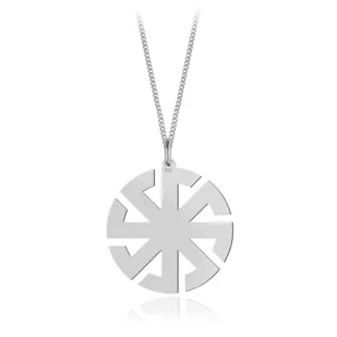 Naszyjnik Kołowrót Naszyjnik z motywem słowiańskiego kołowrotu w najprostszej, minimalistycznej wersji. Odpowiedni zarówno dla Panów jak i dla Pań - aby jeszcze lepiej dopasować naszyjnik do wyboru jest kilka splotów i grubości łańcuszka. Motyw Kołowrotu lub tez Swarożycy, Swarogi czy Swargi to pradawny symbol Słowian, choć wystepował praktycznie w całej Europie Połnocnej. Uważa się go za symbol Słońca i żywiołów, ma dynamiczną formę, więc przypisuje się jej także symbolikę zmiany (żywiołów, pór roku, cykli życia itp.) jednocześnie będące powtarzalne i niezmienne. W nawiązaniu do symboliki ognia bywa symbolem słowiańskiego boga Swaroga.