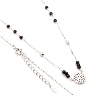 Srebrny naszyjnik z motywem wzorzystego koła i łańcuszkiem o klasycznym splocie typu ankier. Wykonany z najwyższej jakości lśniącego srebra próby 925. Fabryc...