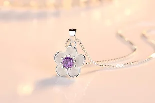 Srebrny naszyjnik z kwiatową zawieszką - Fioletowy