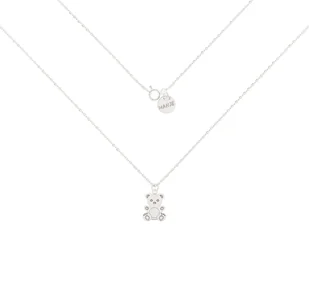 Srebrny naszyjnik z misiem. Wykonany ze srebra próby 925. Wymiary zawieszki: Zawieszka grawerowany Miś (niedźwiedź, niedźwiadek): Szerokość: 10,2 mm. Wysokoś...