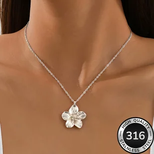 TEMU Wysokiej jakości złoty naszyjnik 'S z nierdzewnej stali 316 z motywem kwiatowym dla kobiet. Jest odporny na blaknięcie, wygodny, wszechstronny i
