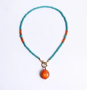 UNIKAT - naszyjnik - choker z koralem - turkusowo-pomarańczowy