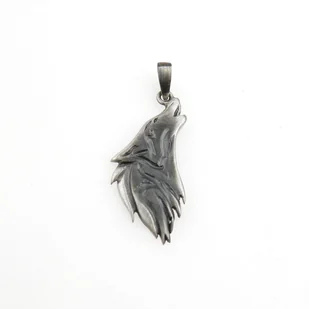 Zawieszka w kształcie wilka wykonana ze srebra. Długość zawieszki 3,3 cm, szerokość 1,2 cm. Waga:2 gr. Zawieszka wykończona oksydą w kolorze grafitowym. Sprz...