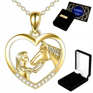 Złoty Naszyjnik 925 Dziewczynka z Koniem Serce Koń Serduszko Cyrkonie Konik