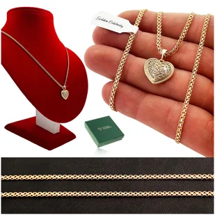 Złoty Naszyjnik Serce + Bismark 18K Prezent Dla Dziewczyny, Mamy, Babci 18K