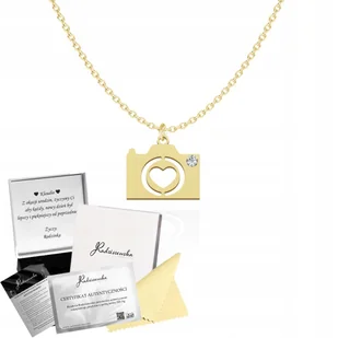Złoty Naszyjnik z Aparatem Fotograficznym SREBRO 925 DEDYKACJA GRATIS
