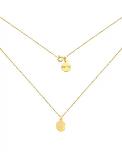 Złoty naszyjnik łańcuszkowy zdobiony bryłą geometryczną i zawieszką z logo marki. Całość wykonana ze srebra 925 powlekanego 24 karatowym żółtym złotem. Długo...