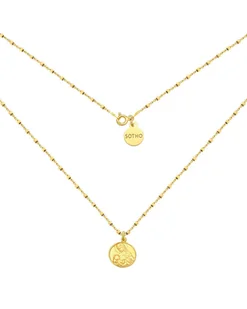 Złoty naszyjnik łańcuszkowy zdobiony medalikiem z wizerunkiem Matki Boskiej i zawieszką z logo marki. Całość wykonana ze srebra 925 powlekanego 24 karatowym ...