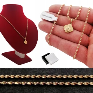 Złoty Singapur Skręcany + Medalik Z Jezusem 45 Cm