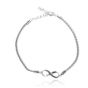 nr. produktu: 230. 30 Srebrna bransoletka pr. 925 Uszlachetnienie: rodowane Waga ~ 2,4 g Wielkość nieskończoności: : 1,5 cm/0,7 cm Długość bransoletki: 17 cm plus 3 cm przedłużki Rodzaj łańcuszka: