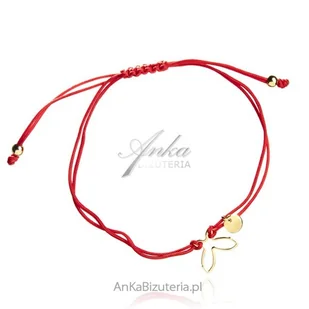ankabizuteria.pl Bransoletka srebrna pozłacana MOTYLEK na czerwonym s