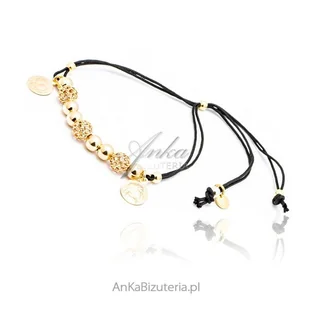 ankabizuteria.pl Bransoletka srebrna pozłacana na czarnym sznureczku