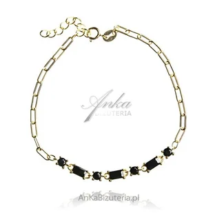 ankabizuteria.pl Bransoletka srebrna pozłacana z czarnymi cyrkoniami