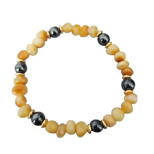 ~ średnica kulek ok 0,5 cm Kamienie: naturalny bursztyn bałtycki w kolorze żółtym i z hematytem Opakowanie do bransoletki - na zdjęciu. Zaprezentuj swoją miłość do naturalnej elegancji z naszą wyjątkową bransoletką z bursztynu bałtyckiego. Właściwości Bursztynu: