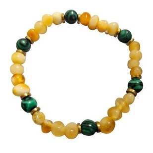 ~ średnica kulek ok 0,5 cm Kamienie: naturalny bursztyn bałtycki w kolorze żółtym z zielonym malachitem Opakowanie do bransoletki - na zdjęciu. Zaprezentuj swoją miłość do naturalnej elegancji z naszą wyjątkową bransoletką z bursztynu bałtyckiego. Właściwości Bursztynu: